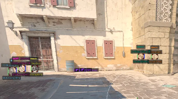 Вывод никнеймов, здоровья, брони, названия позиции на карте (Position Name) и дистанции.Weapon Info