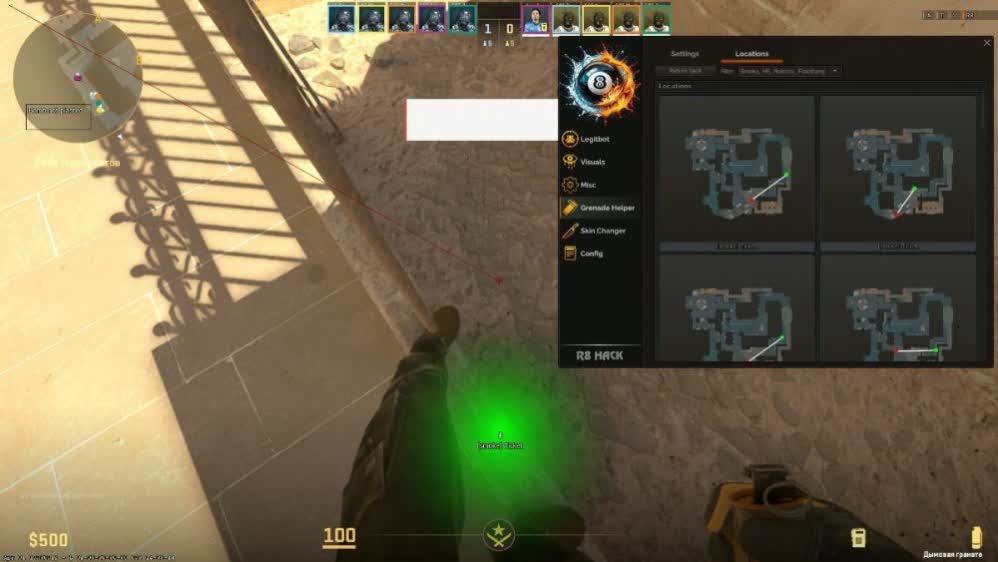 Помощник для раскидки гранат (показывает куда встать и куда целиться).SkinChanger