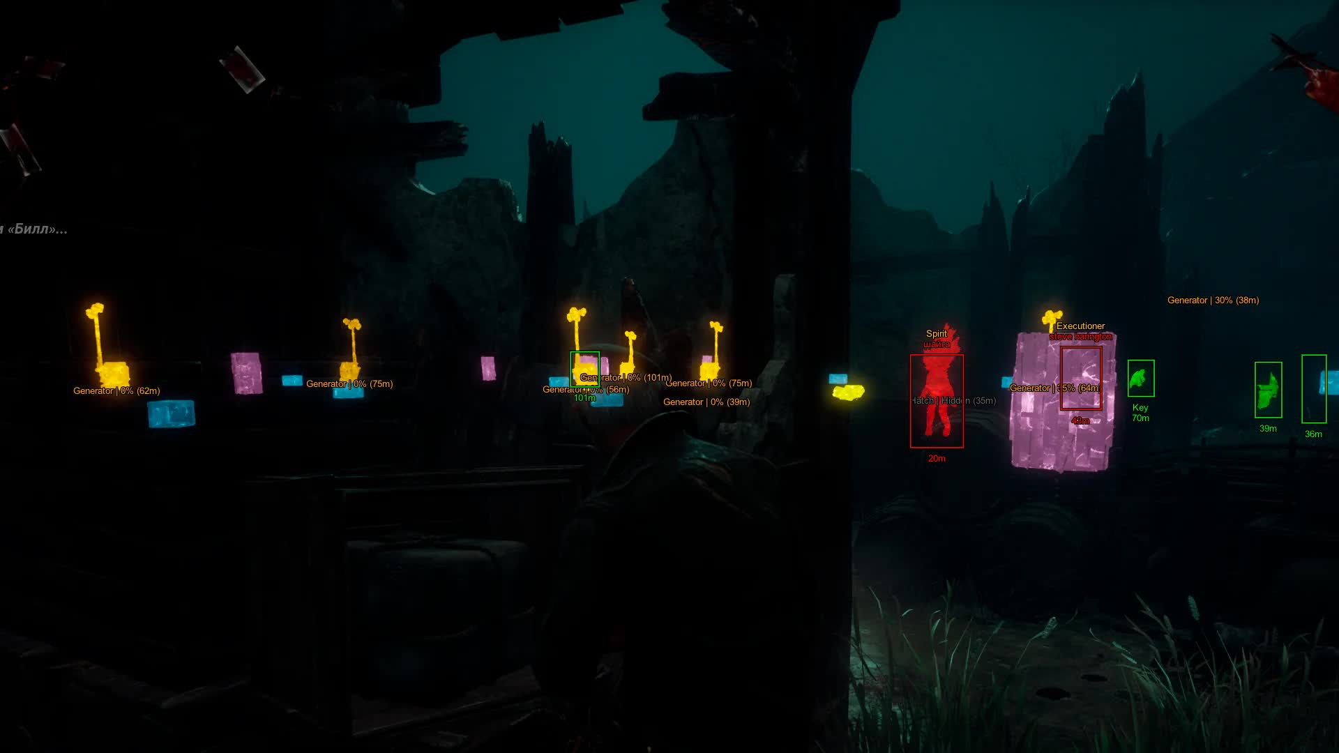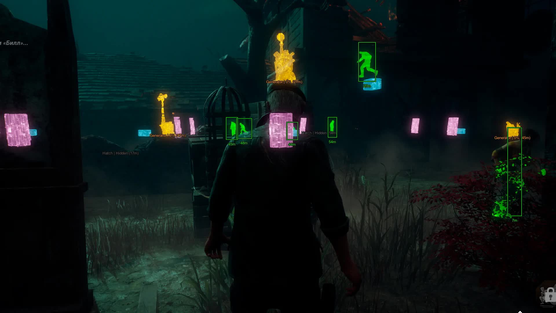 Info: Отображение никнеймов игроков, имен персонажей (для маньяков) и дистанции до них.