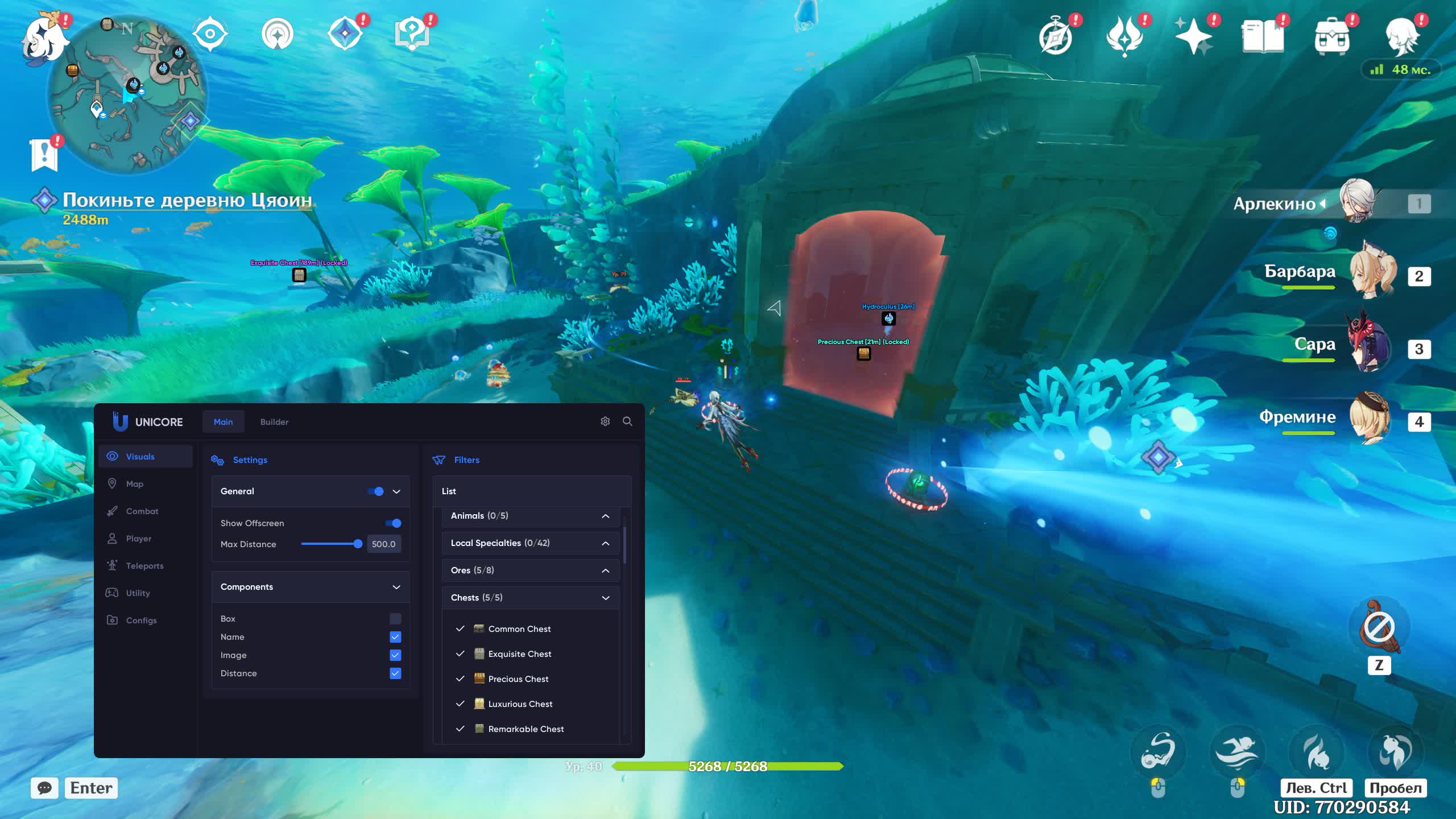Если вы решили купить чит геншин, Unicore предложит вам больше, чем стандартный набор функций. Его интерактивная карта с сохранением прогресса превращает исследование мира из рутины в увлекательный процесс. Это не просто ESP, это полноценный ассистент.