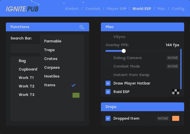 Представляем IGNITE — многофункциональный приватный чит для RUST, разработанный командой IGNITE для игроков, стремящихся к полному контролю над игровым миром. Этот продукт является вершиной инженерной мысли, предлагая высочайшую точность аимбота с системой предсказания, невероятно детализированный ESP и широкий набор функций для боя и передвижения. IGNITE создан для тех, кто хочет не просто выживать, а доминировать на любом сервере.
