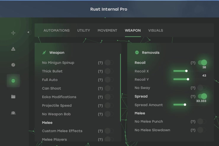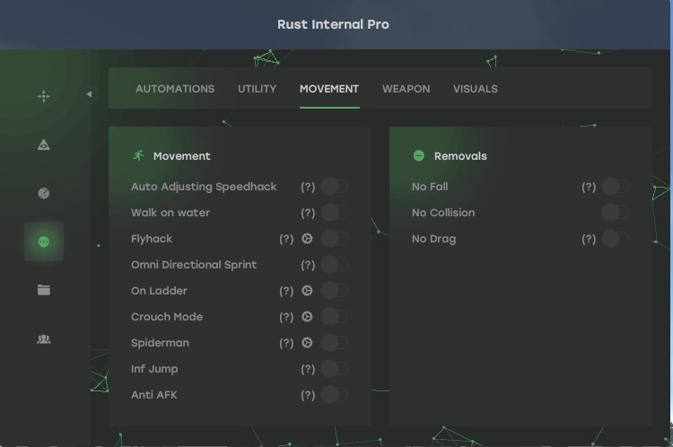 От тонкой настройки баллистики и материалов до продвинутого управления персонажем и автоматической рыбалки — Matrix дает вам инструменты, которые ранее были недоступны. Если вы готовы переосмыслить свои возможности в мире RUST и доминировать на любом сервере, Matrix — ваш единственный выбор.