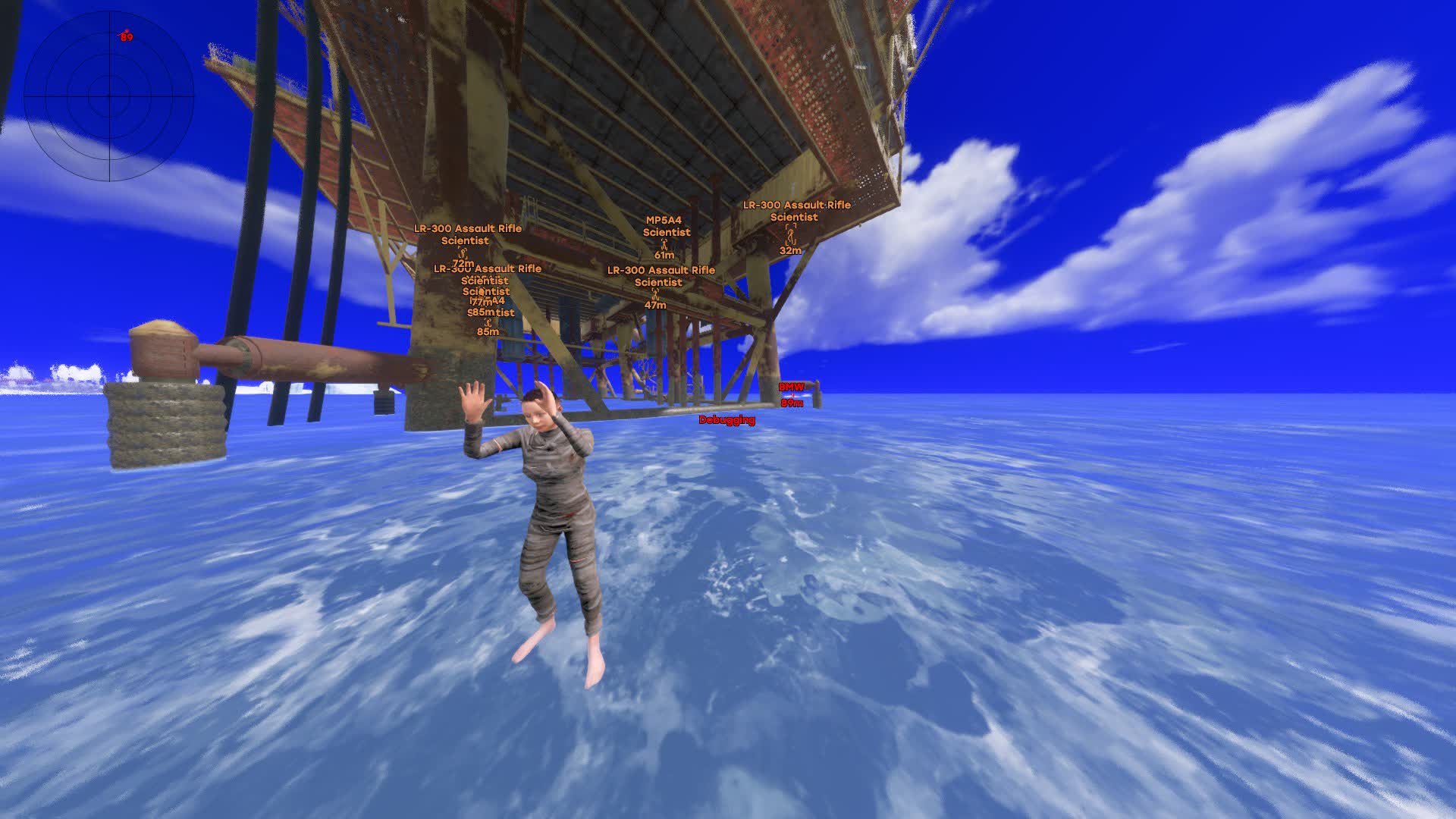 ESP на игроков и NPC: Полная информация о противниках и ученых: ник, дистанция, ID команды, рамка (бокс), скелет, предмет в руках и содержимое хотбара.